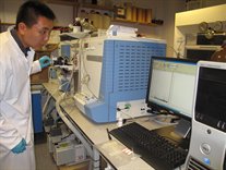 This is a workhorse triple quadrupole instrument with excellent performance for quantitative analysis. It is used for targeted metabolite profiling and readily capable of monitoring multiple analytes simultaneously. It offers both electrospray and APCI ionisation modes and is coupled to an Agilent 1100 series HPLC with UV diode array detection. Current projects include analysis of eicosanoids, endocannabinoids from mammalian tissues and flavonoids in fruit extracts.