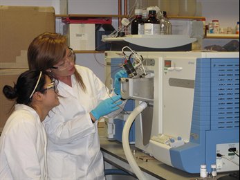 This instrument combines triple quadrupole scan modes with sensitive ion trap scans (MS3) in a single LC-MS/MS run. The QTRAP 4000 offers electrospray and APCI ionization modes. A nanospray source is also available. This ion trap mass spectrometer is interfaced with an automated Shimadzu LC-HT series HPLC and a UV detector. Advanced MS scanning options and information dependent acquisition offer unique approaches to metabolite profiling and identification. This instrument offers excellent sensitivity for both quantitative and qualitative targeted metabolite profiling, and for the identification and structural confirmation of new metabolites. Further information is available from Applied Biosystems.