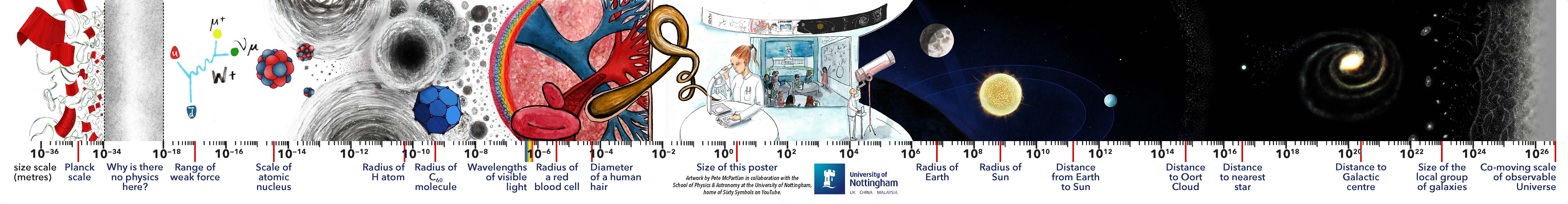 large-scale poster for your school. The illustration spans the very smallest to the very largest scales in the Universe and was designed by Prof Mike Merrifield and Pete McPartlan, whose artwork features in many of our videos. By providing your contact details the UoN will retain your information in accordance with the Data Protection Act (DPA) 2018. For further information on how we process personal data visit our