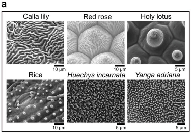 Surface texture (topography) can be used to endow biomaterials with bioactive properties. The variety of topologies available is immense and such large number of possible designs makes it challenging to find the optimal surface structure to induce a specific cell response. Currently, the TopoChip platform is the largest collection of topographies with 2176 which were designed in silico microtopographies. Inspired by the diversity of natural surfaces, the authors of a recently published article in Advanced Materials, investigated a range of topologies based on natural surfaces such as the red rose. To this end, 26 plant and insect surfaces, were replicated in polystyrene and the resulting cellular responses were assessed leading to discovery of routes to bacterial colonication and stem cell attachment and phenotype control.