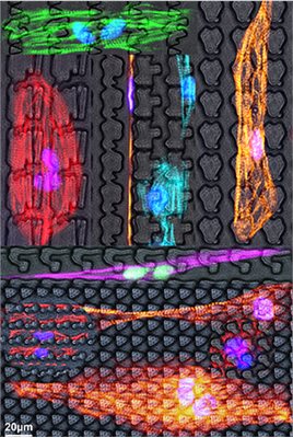 Patient stem cell-derived cardiac cells on topographies
