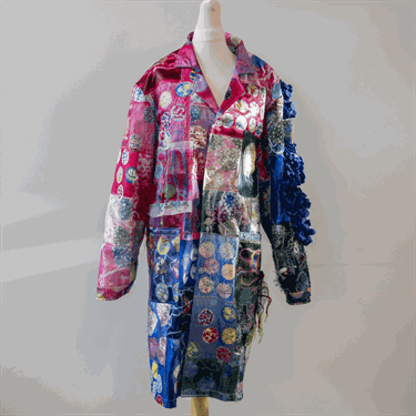These bio-instructive material designs were taken from canvas to 111 textile artworks created by Nottingham-based community members (through workshops held at City Arts and Hubb Nottingham, Sneinton) which were skilfully stitched into a stunning lab coat (by Bespoke Clothing in Nottingham City - one BC). This was part of an exciting new project, HeART, funded by University of Nottingham’s Institute for Policy & Engagement.