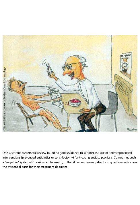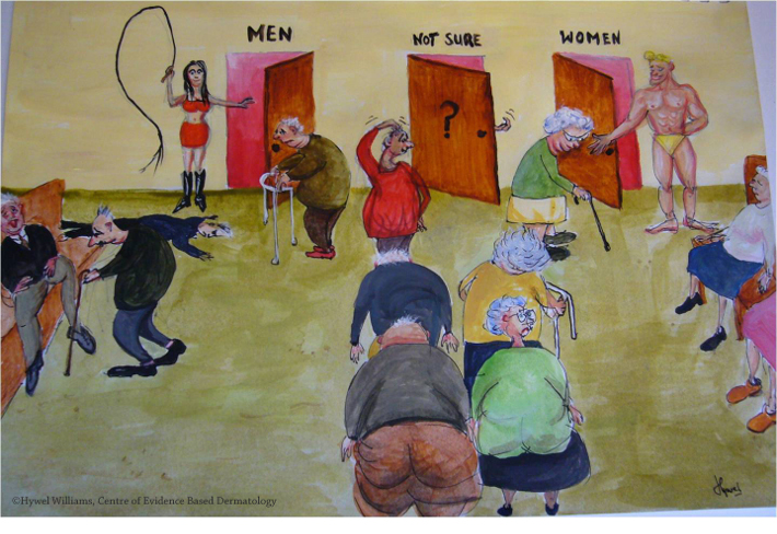 Professor Hywel Williams has created some Evidence Based Medicine (EBM) illustrations for teaching. He is happy for the drawings to be used by others under a Creative Commons Attribution License, but please acknowledge the source.
