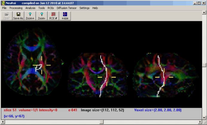 NeuRoi can perform several DTI functions: