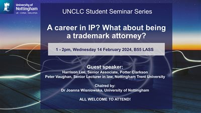 In this session Harrison Lee, a trade mark attorney at Potter Clarkson, and Peter Vaughan, a trade mark attorney and senior lecturer at Nottingham Law School, will discuss what a trade mark attorney is and does and the ways to enter this interesting and varied career. They will give examples of the type of work you could do, give you a chance to experience some of the work that you might encounter.