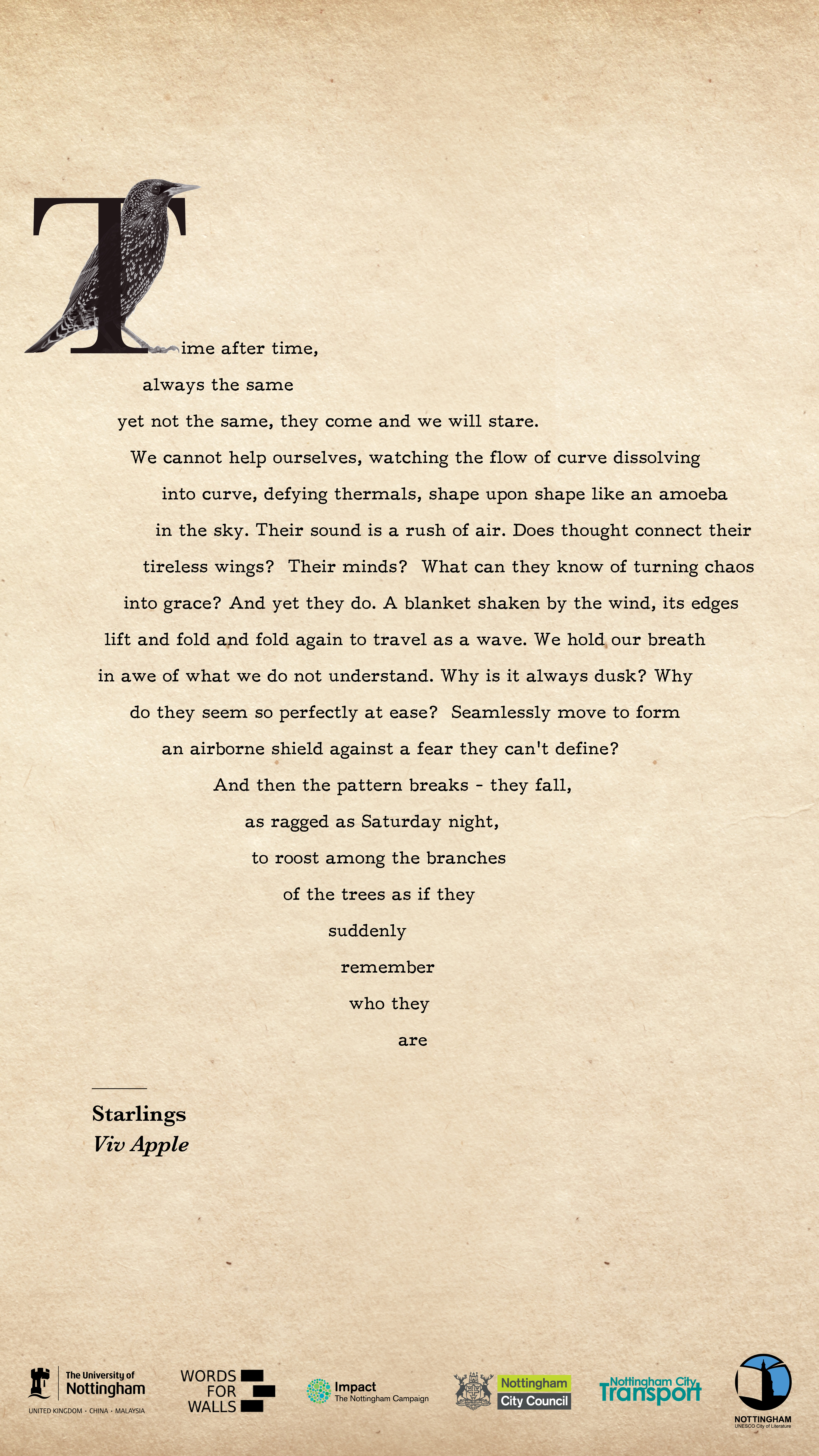 A huge thank you to Kathryn Towler at the University of Nottingham, who has designed a beautiful set of posters featuring these selected poems, which can now be seen in a number of exciting locations across Nottingham, including Broadway Cinema, Nottingham Contemporary, and Bromley House Library, to name just a few!