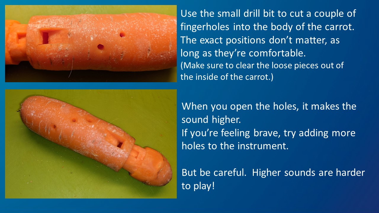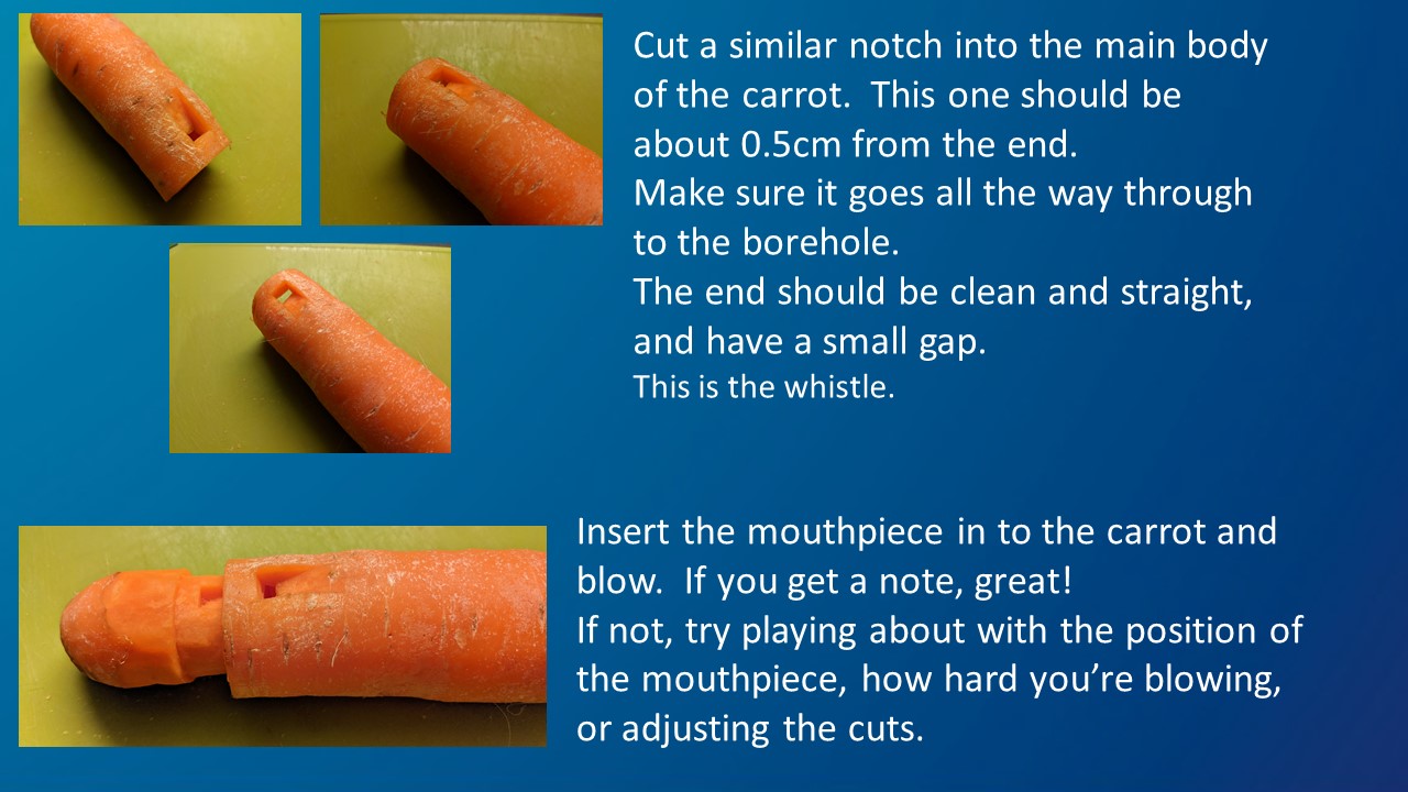 Or, you can have a look at the instructions below to see how you can make your very own musical instrument out of a carrot!