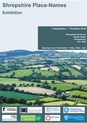 Following successful stints in Oswestry and Ludlow, the 'Place-Names of Shropshire' exhibition will be coming to Shrewsbury this autumn. Accompanied by a fully-illustrated 50-page colour booklet, the exhibition will be hosted by Shropshire Archives.