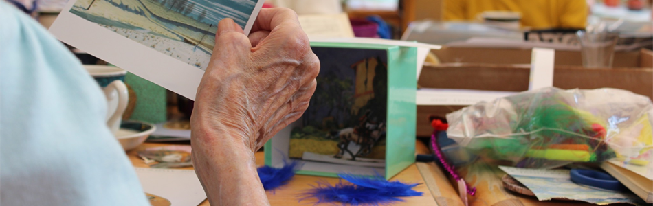 Roma Patel facilitated a series of creative workshops over 13 weeks with care home residents from Nottinghamshire Hospice, The Firs and Sycamore House, and Kenyon Lodge. A series of digital technologies were introduced to older adults and created some playful results. Roma drew her inspiration from self-taught artist Joseph Cornell produced work in the 1950’s and 60’s. Cornell’s most characteristic art works were boxed assemblages created from found objects. These are simple shadow boxes, usually fronted with a glass pane, in which he arranged eclectic fragments of photographs or Victorian bric a brac. Many of his boxes, such as the famous Medici Slot Machine boxes, are interactive and are meant to be handled.