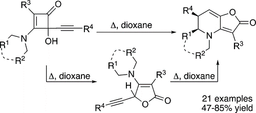 The addition of lithium amides to cyclobutenediones provides access to 2-oxo-but-3-enamides and tetrasubstituted furans via a new mode of ring opening involving enone cleavage via O-to-C-lithium transfer.