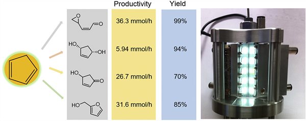 The PhotoElectro Team published, "Combining Engineering and Chemistry for the Selective Continuous Production of Four Different Oxygenated Compounds by Photooxidation of Cyclopentadiene using Liquid and Supercritical CO2 as Solvents", L. Wu, Z. Abada, D.S. Lee, M. Poliakoff, M.W. George, Tetrahedron, 2018, 74 (25), 3107-3112, DOI: 10.1016/j.tet.2017.11.048. (photo above)