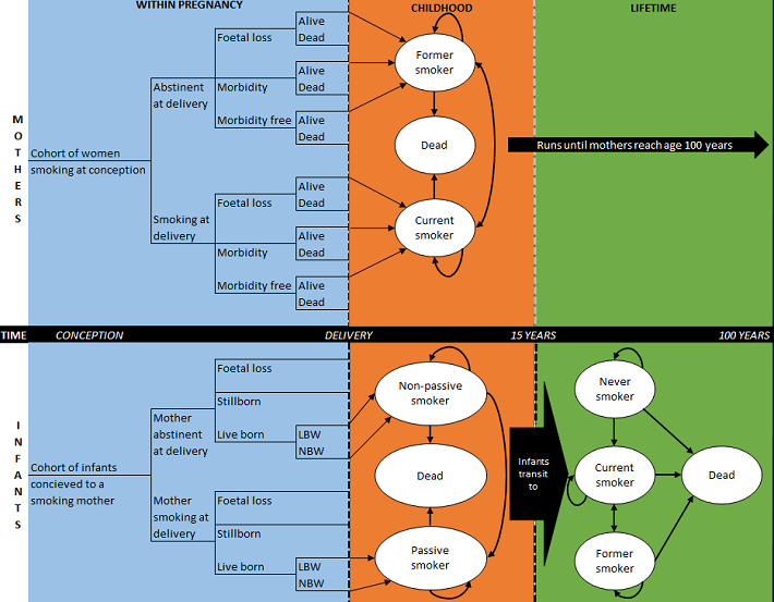 ESIP was constructed after an extensive reviews of both the economic and epidemiological literature on the risks and benefit smoking in pregnancy and is written in Microsoft Excel to allow easy access. It includes most morbidities for the mother and infant that are associated with maternal smoking in pregnancy, which are: