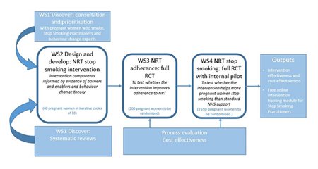 Most pregnant women want to stop smoking, but some find it hard. Around one in ten smoke at the time of delivery. NRT is available on the NHS for pregnant women who struggle to stop smoking, but most do not use enough NRT or take it long enough for it to work. We know that pregnant women who smoke are most likely to make use of NHS support if they find this relevant to them and easy to understand. Therefore, we have developed a tailored support package, which aims to improve use of NRT, to give pregnant women the best chance of quitting smoking.