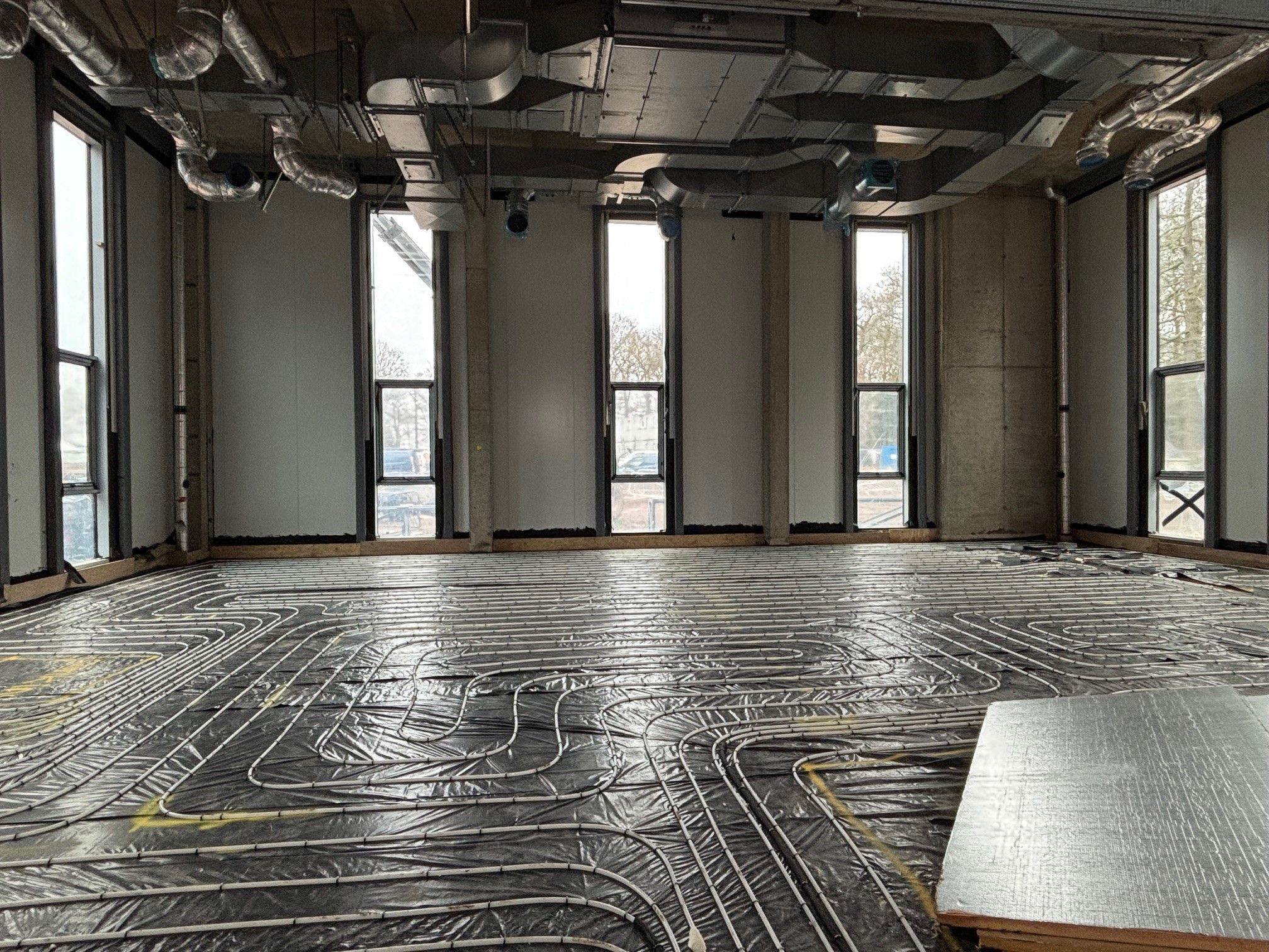 Our latest photos reveal the bespoke wooden bedheads being installed in patient and visitor bedrooms, and underfloor heating being installed throughout the ground floor including the main gym.