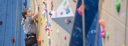 Student climbing at David Ross Sports Village wall Students
