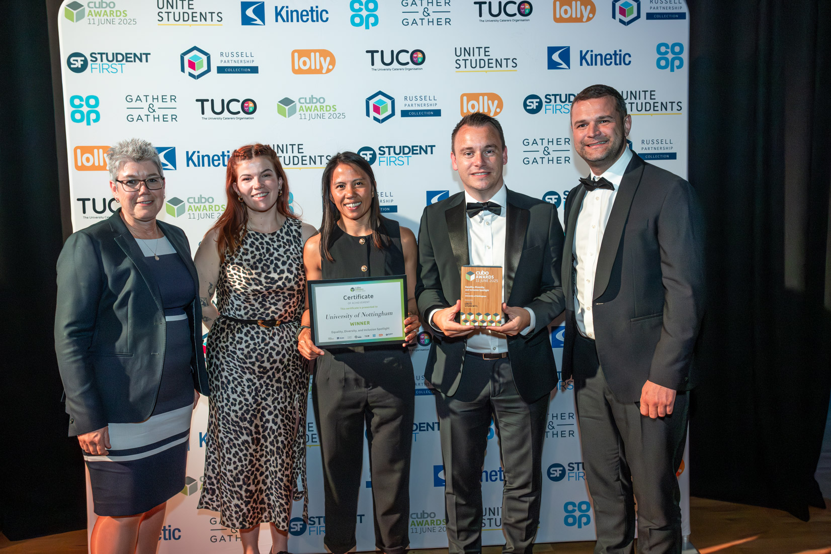The University of Nottingham came away with two awards at the 2025 CUBO Awards Ceremony: Equality, Diversity, and Inclusion Spotlight, and the Judges Choice Award.