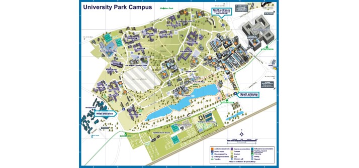 Wheelchair users and those with mobility impairments - we have tried to make sure routes avoid steps. However, the University Park site is hilly, therefore if you struggle with self-propelling up inclines then these routes may be challenging.