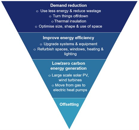 Our plan takes a hierarchical approach to carbon reduction and includes several different interventions, investments and policies. This approach prioritises: