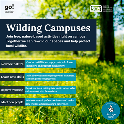 Wilding Campuses is a regional partnership project to restore local natural heritage, led by SOS-UK and made possible with the Heritage Fund and thanks to National Lottery players.