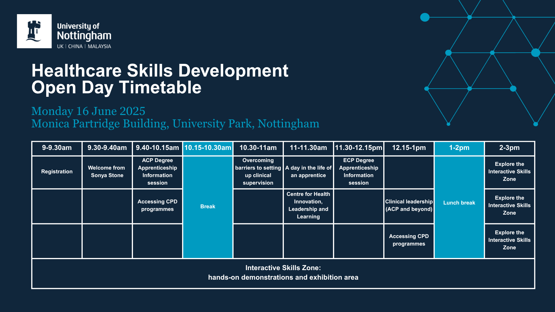 Our skills zone exhibition area provides an opportunity for you to take part in hands-on demonstrations and discuss our skills development opportunities in more detail with university representatives.